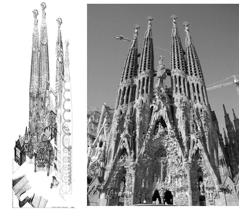 Sagrada Familia / Axonometría seccionada del Nacimiento (1985), and Sagrada Familia (c) Hiroya Tanaka