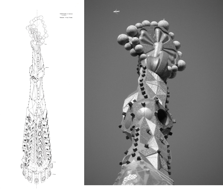 Sagrada Familia / Terminación del Campanario axonométrico revestido (1983) and Sagrada Familia (c) Hiroya Tanaka
