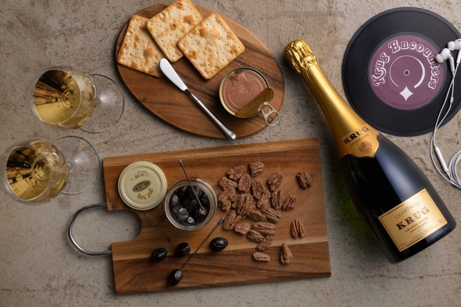 Details: a 750 ml bottle of Krug Grande Cuvée 169th Edition, Two dedicated glasses (not for sale), earphones, pairing food, etc.