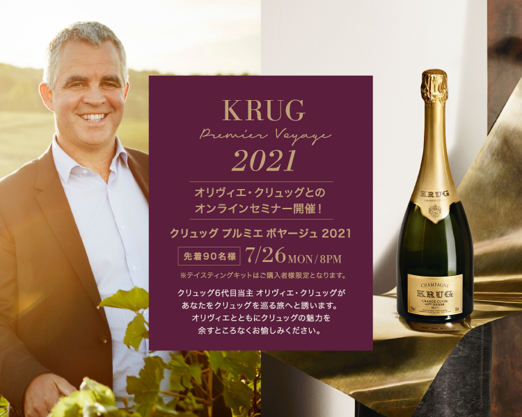 TERRADA WINE MARKET, a wine market site operated by Warehouse TERRADA in collaboration with Krug, the prestige champagne house by MHD Moët Hennessy Diageo K.K. will present “KRUG Premier Voyage 2021,” an online seminar by Olivier Krug, the sixth generation of the Krug family and Director of the House on July 26th, 2021 (Mon).