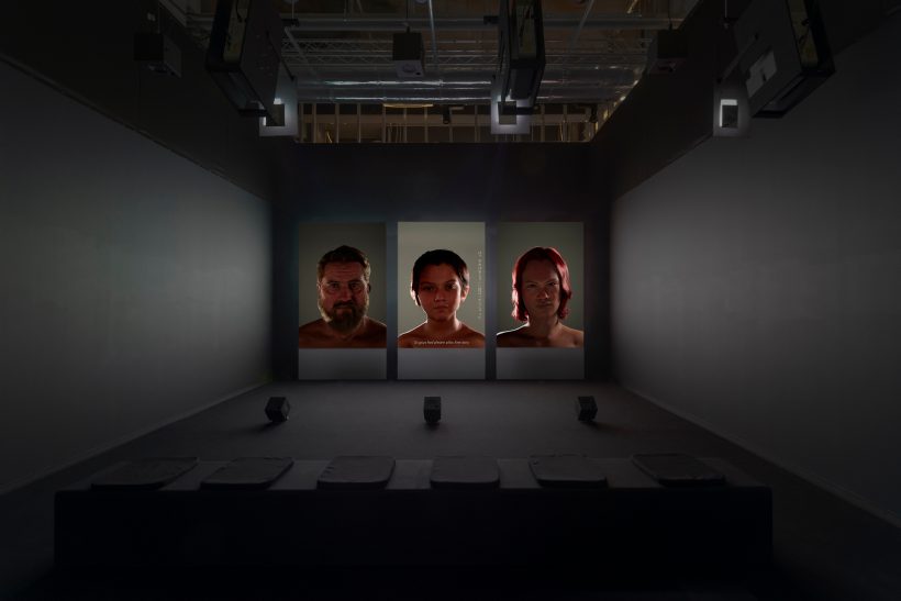 Yuki Harada has been conducting research on Japanese immigrants in Hawaii for the past years. It can be said that prior to the Lahaina disaster on Maui Island that occurred in the summer of 2023, Harada had already developed the perspectives to take a serious look at the urgent issues of our time, such as global warming, immigration, and refugees. His understanding and expression take a process of listening carefully to the voices of others, encountering local histories and narratives, learning them synthetically, and transmitting them in a new visual language. It seems he is inspired by a Noh method that connects this world and beyond the grave. Transcending time and space and connecting individual existence and society, as well as others and oneself, Harada wove complex and multi-layered elements together through digital technology, overlaying with portraits, narratives, and subtitles on a single screen. Seeing the way that Harada kicks off the quest, I look forward to the next chapter of his further developments. [Yukie Kamiya / Art Critic, Independent Curator]