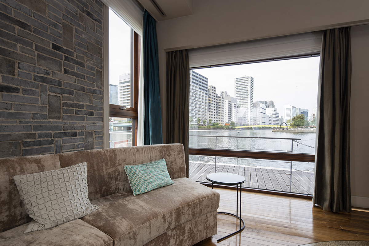 The most spacious room in PETALS TOKYO with tranquil palette choices and design decor for a truly luxurious experience. Portholes on the walls create the atmosphere of a private cabin on a cruise ship.