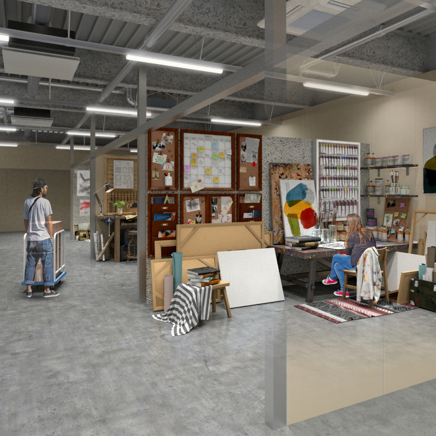 This studio type features an open atmosphere and fosters easier communication between artists.