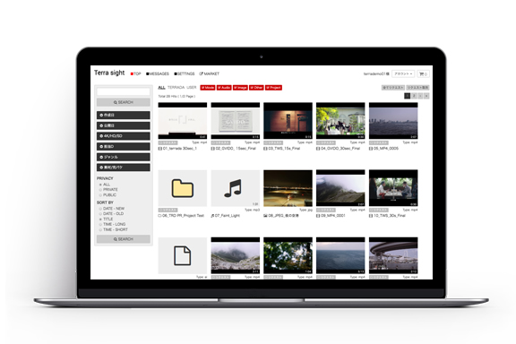 Terra sight is a content management system for video, music, and images. Original files are stored securely offline. On our web system, proxies are available for full-length previews and at your discretion can be made searchable via appropriate metadata.