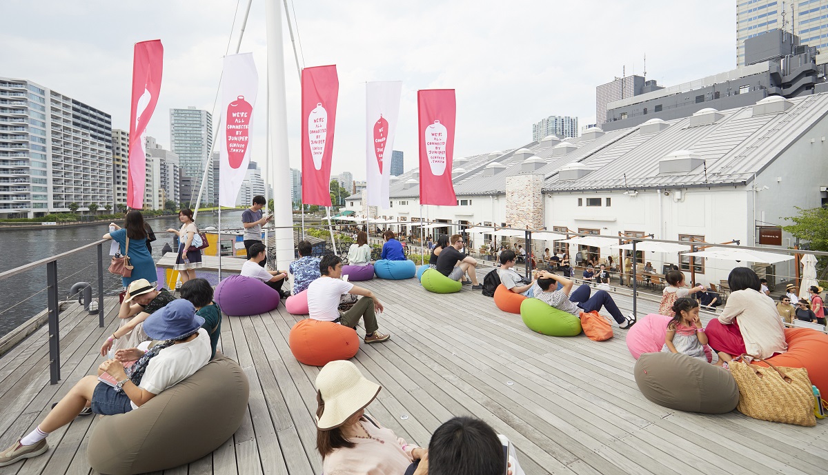Shipdeck space floating on the Tennoz canal, designed under preeminent architect Kengo Kuma. Enjoy the canal breeze and the light dancing off the water—all from on board. An unparalleled space where you can take a sea voyage right inside the big city.