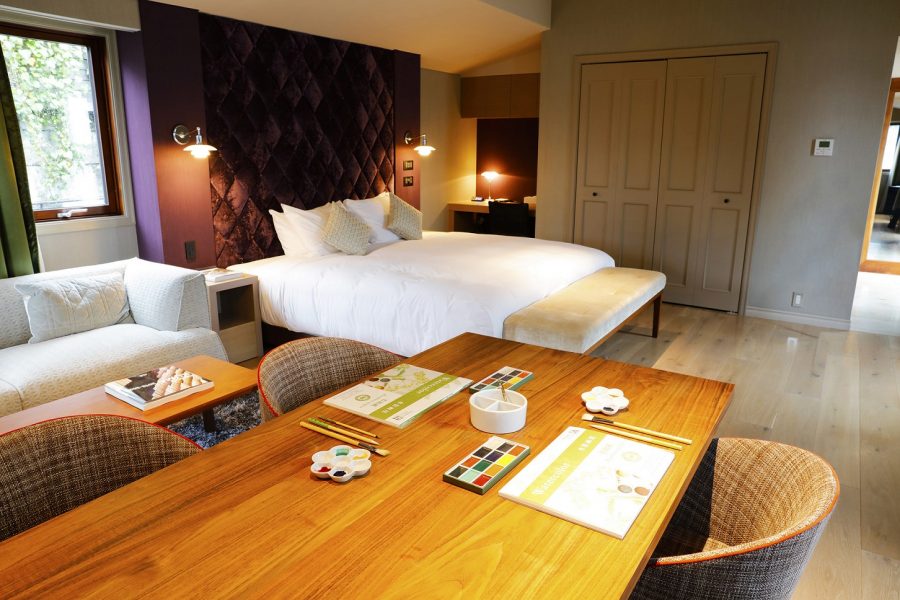 室内設備:ベッド・ソファ・ダイニングテーブル・ライティングデスク&チェア・テレビ・Wi-Fi(無料)・エアコン・トイレ・シャワー・タオル・バスローブ・加湿器・ドライヤー・コーヒーメーカー・セイフティボックス・アイロン