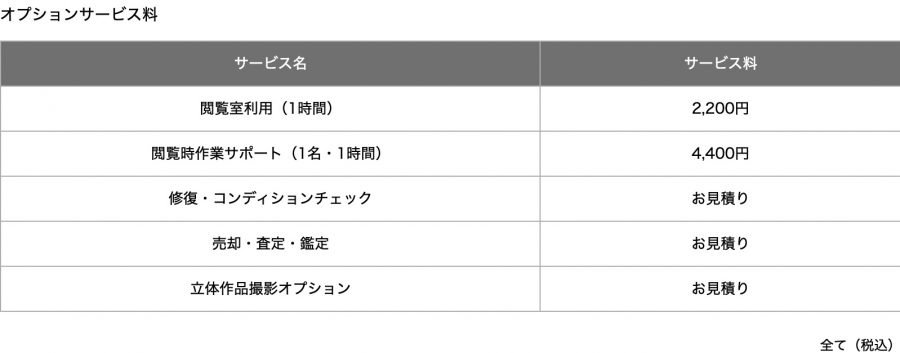 【TERRADA ART STORAGE ONLINEサービス利用料金】