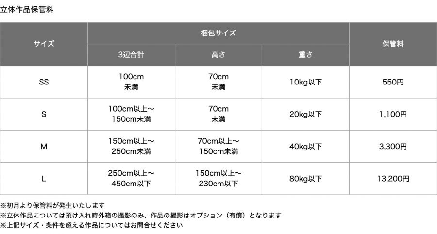 キャンペーン期間中に立体作品を保管いただくと、保管料が3カ月分無料になります。