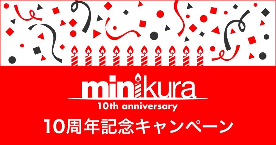 このたびサービス開始10周年を迎えたminikuraは、3つの記念キャンペーンを実施します。応募者の中から10名様に、ハウスキーピング協会認定「整理収納アドバイザー」が自宅を訪問し、minikuraを活用した収納方法を伝授しながら自宅の片付けをサポートする「プロのお片付け」を提供するほか、10周年記念オリジナルエコバッグや保管料最大2カ月無料の特典をプレゼントします。