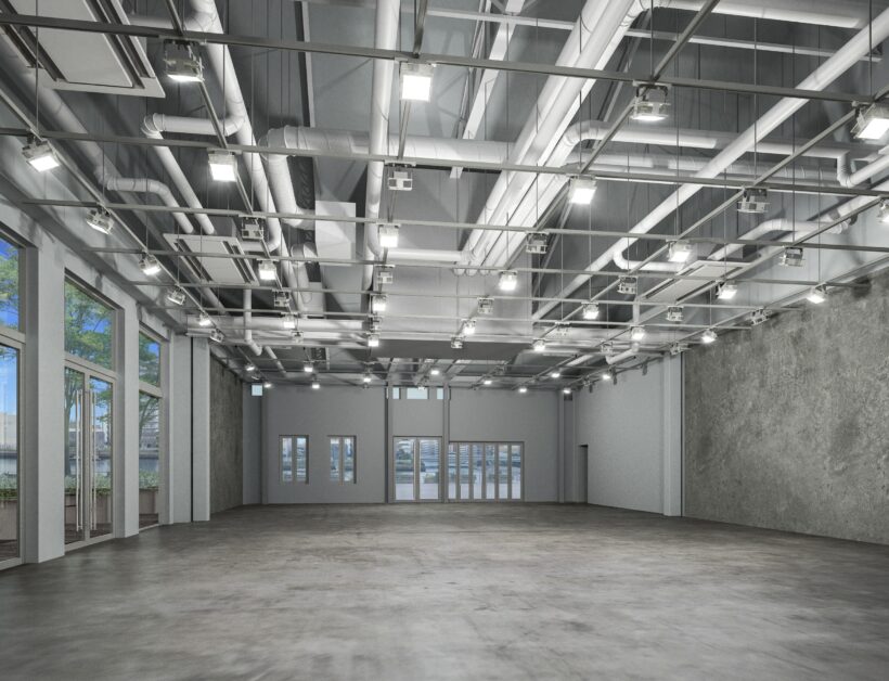 倉庫建築ならではの無柱構造を生かしたワンフロア空間です。約4.55mの天井高があり、柱に制限されることなく、展示物やステージ、演出装置の配置が可能です。用途に応じて、自在にレイアウトを組み替えることができます。天井には照明や音響、装飾を設置できる吊元(つりもと)を備えています。来場者用の専用トイレや控室を設けており、展示会や発表会などのイベントにも最適です。