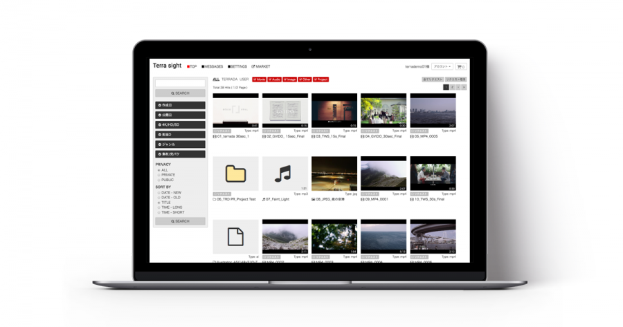 Terra sightは、動画・音楽・静止画等のコンテンツ一括管理システムです。元データは別途オフラインストレージで保存し、複製したプロキシ動画(※1)にメタデータ(※2)を付与することで、必要とするコンテンツの検索と全編プレビューがオンライン上でできます。