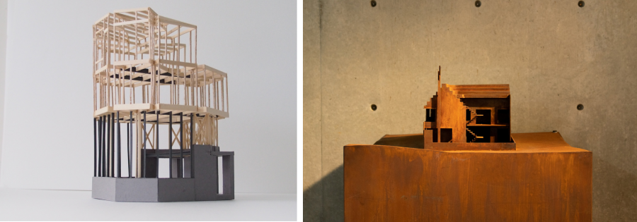 左) 金田泰裕 Todoroki House in Valley©️yasuhirokaneda STRUCTURE 右) 梅沢良三 IRONHOUSE構造模型©️瀬尾憲司