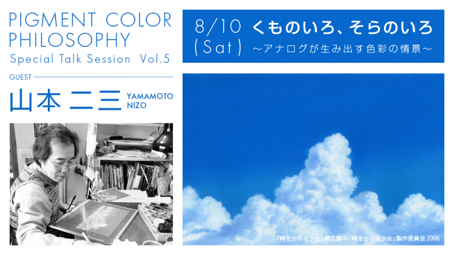 寺田倉庫(東京都品川区 代表取締役:中野 善壽)が運営する画材ラボ「PIGMENT TOKYO」では、色彩をテーマにしたトークセッションシリーズ「PIGMENT COLOR PHILOSOPHY」の第5弾として、8月10日(土)に数々のアニメーションの背景を手がけてきたアニメーション映画美術監督の山本 二三氏をゲストに迎え、「Vol:5 くものいろ そらのいろ ~アナログが生み出す色彩の情景~」を実施いたします。