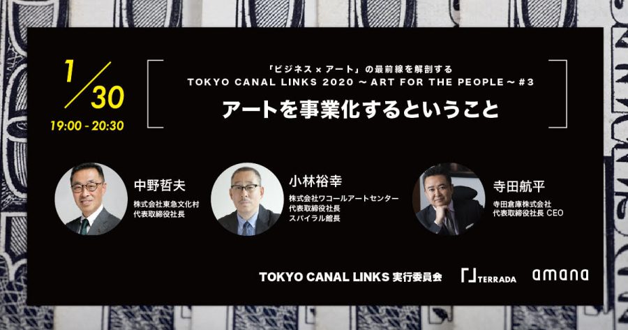 寺⽥倉庫株式会社(東京都品川区 代表取締役:寺田航平)が参画するTOKYO CANAL LINKS実行委員会は、2020年1月30日(木)に東京・天王洲のイベントスペースTERRATORIAにて、『「ビジネス×アート」の最前線を解剖する TOKYO CANAL LINKS 2020~ART FOR THE PEOPLE~#03』を開催いたします。