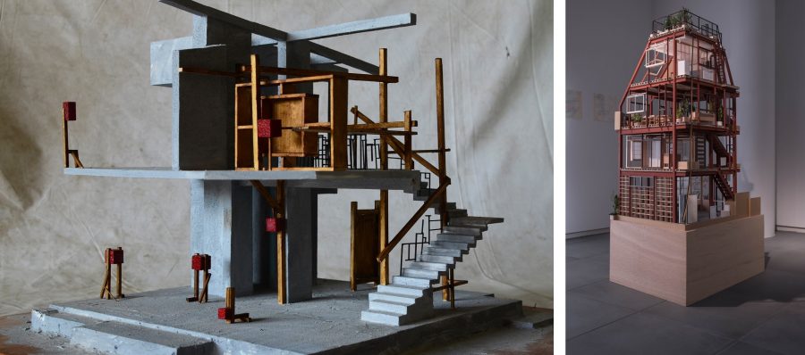 左)佐藤研吾 「シャンティニケタンの家」 模型 (C)In-Field Studio 右)能作文徳 ・常山未央「西大井のあな」 模型 (C)️Ivan Bonev